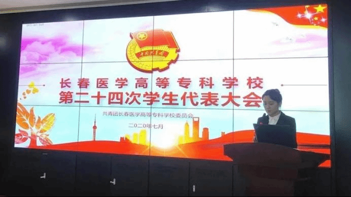 “我们是五月的花海,用青春拥抱时代。我们是初升的太阳,用生命点燃未来。”伴随着高昂的团歌,长春医学高等专科学校第二十四次学生代表大会于7月15日13时在校善教楼二楼报告厅隆重召开。本次大会受疫情影响突破传统模式,以线上线下相结合的方式开展。学生处处长刘力为、护理党总支书记高寒、药学党总支副书记高雅静、校团委副书记雷明、临床医学团总支书记杨敬然、护理团总支书记李宏、药学团总支书记马艳慧、学生会各部门指导教师及各学院选派的430名线上学生代表共计473人出席了本次大会。会议由第二十三届校学生会主席团成员杨悦主持。