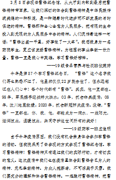 学雷锋,不忘初心,做好事,树时代新风。雷锋精神的核心就是为人民服务,我们要学习他服务人民、助人为乐的奉献精神;学习他干一行爱一行、专一行精一行的“螺丝钉”精神;学习他自强不息,锐意进取的创新精神;学习他艰苦奋斗、勤俭节约的创业精神。溯本求源传承红色基因,正本清源争当雷锋传人。学习雷锋精神,要内化于心、外化于行、固化于魂,让学雷锋不仅成为呐喊口号,更要成为社会尊崇和行动自觉!
