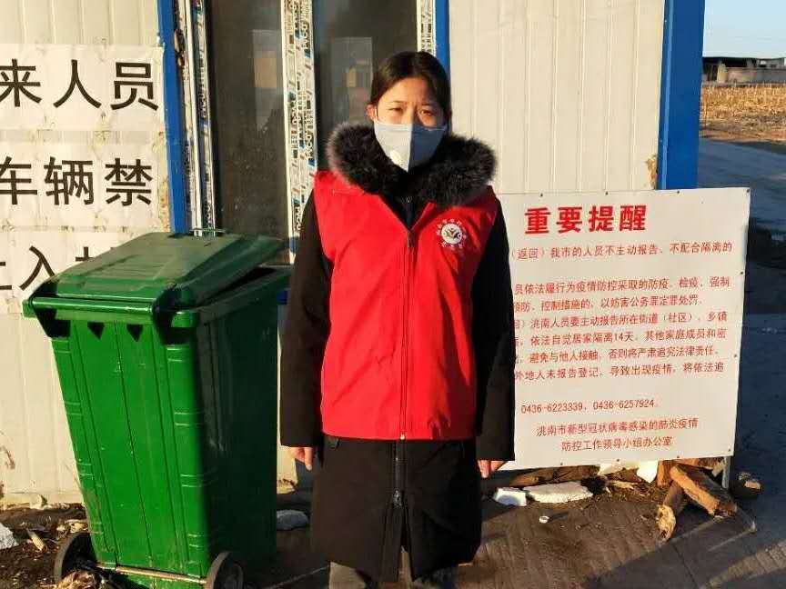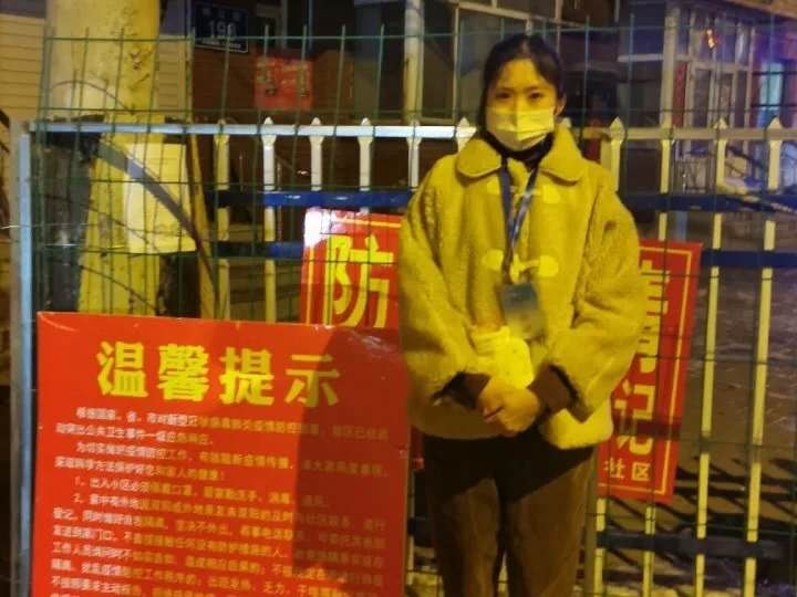 在志愿期间,她在小区卡点执勤时,零下十几度的温度,狂风大雪的恶劣天气,她每天值班十个小时,带着厚重的口罩,不能自由的呼吸。虽然带着手套穿着棉鞋,但是还得用冻僵的双手为来往的车辆和人群做好登记。双腿已经麻木,耳朵被多层口罩勒出了血痕。同时还会遭到谩骂,但是她选择微笑面对,有礼貌的解释;她在社区进行排查时,每天要走将近十栋楼,挨家挨户的敲门、登记。很多不理解的人会选择把她拒之门外,甚至满嘴怨言和质疑,但她选择了坚持;在政府录入信息时,每天十个小时盯着电脑,输入着数字,如果说有休息的话,那便是抽出十分钟时间吃午饭。志愿期间哪里需要她就到哪里。