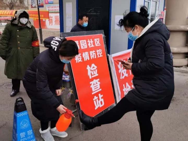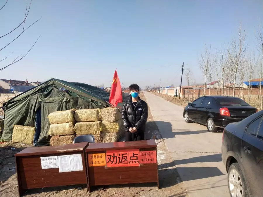 2月18日,王莹正式上岗,在村庄入口处设卡排查、对外地回本村的人员进行登记填写隔离告知书、对本小区的来往车辆和居民进行出入卡检查、测量体温等。