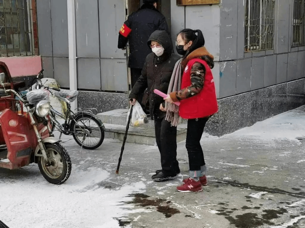 在志愿服务期间,她主要负责居民出入证的办理、给居民买菜、贴福字等工作。不仅如此,她还用喇叭在居民楼内循环播放“注意新型冠状病毒事项”。在积极参与防疫工作的同时,她也一直在进行志愿服务的培训,增加自己的知识,学习更多的注意事项,帮助身边更多的人。作为一名医学生,她将自己所学的七步洗手法教给了身边的家人、一起工作的志愿者和所在社区的居民们。虽然在志愿服务期间又忙又累、工作内容繁杂,但是她从没有一句怨言,疫情就是命令,防控就是责任,她深知此时此刻,我们要众志成城、共同抗疫。她说,让她印象深刻的是有一次进入管理的小区下发传单张贴告示的时候,发现了一位老爷爷在小区门口徘徊,那天下着大雪路还很滑,原来老爷爷摔了一跤身上满是淤泥,她发现后立即上前扶住老爷爷,询问过后才知道老爷爷迷路了,身上也没有通行证,得知这个消息后,她们志愿者一行人立即将老爷爷安全送回家中。