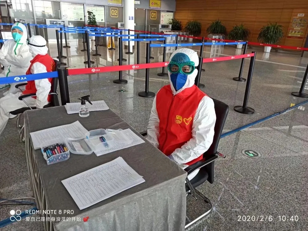 我校2017级康复2+3班的邓阳同学,在新型冠状病毒出现以后,看到团省委上招募防疫志愿者的消息,义无反顾的选择了报名。本身就是一名志愿者的她,凭借多次志愿服务的经验成功参与到这次的战疫中。她分配到的地点在长春国际龙嘉机场,主要的工作内容是测温和为进京旅客登记。