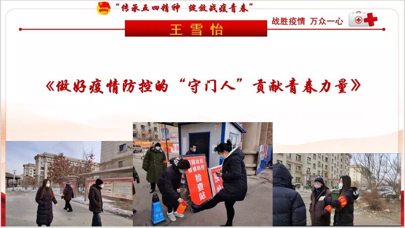王雪怡学姐回答道:“学校对我的专业教育、思想教育将我培养成为一名中共预备党员。虽然在思想上的提升是无形的,但行动却是有形的。在我成为预备党员那天起,我就对自己说:一定要记得今天的初心,保护人民群众和热爱祖国,所以我在这次疫情当中选择成为一名抗击疫情的基层志愿者,这些无形的力量化成了我坚强走向基层一线的行动。”