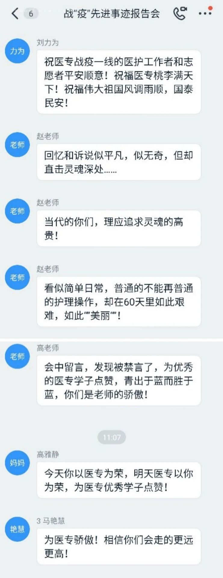 这不仅仅是一场战“疫”先进事迹报告会,更是一次心灵的教育和精神的洗礼。全体参会人员有所思、有所悟、有所感。医专青年学子们,让我们勇于承担责任,共同迎向光明、美好的未来。我们将继续传承五四精神,用实际行动绽放战“疫”青春,让青春在党和人民最需要的地方绽放出绚丽之花。