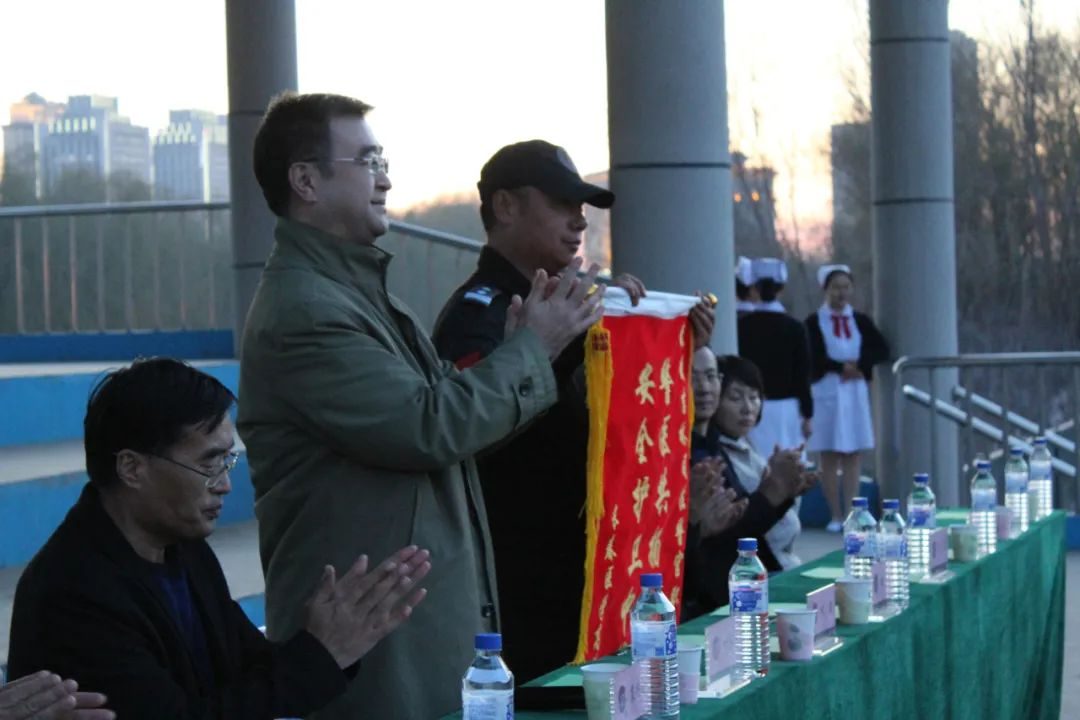 警医共扬青春志,安全护卫“中华情”,校党委书记叶春民代表学校向承训院校领导赠送了锦旗,以表达我校对承训教官的感谢之意和敬意之情!