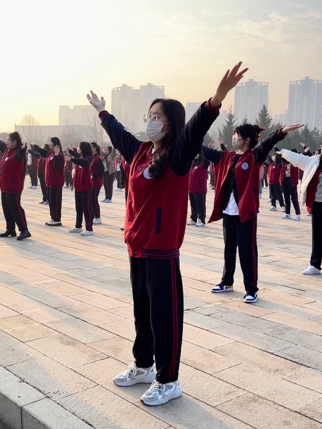 青春悦动的“网红健身操”、具有中医保健功效的“气功八段锦”和整齐划一的“礼仪队早训”,迎着朝霞在充满活力的校园里以年级为单位有序开展,传递出同学们感受运动之美的快乐。