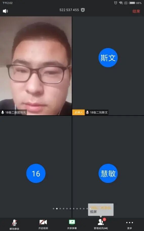 18级口腔医学四班于2020年3月7日星期六使用腾讯会议软件召开以“学习雷锋精神,聆听逆行者故事”为主题的团日活动,参会人数33人。