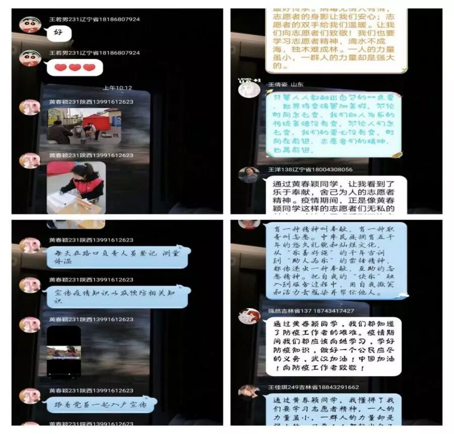 通过此次的活动,充分地调动了同学们的积极性,孙成皓、郑芳萌和刘佳琪三名同学只身投入到了志愿者活动中去,为了此次疫情奉献出他们自己的力量。尽管工作中存在着各种各样的困难,但志愿者们依然个个精神饱满、斗志昂扬,秉持着“奉献、友爱、互助、进步”的精神,奋战在防疫新冠状病毒的前沿。他们深知参与志愿工作,既是在帮助他人、服务社会,同时也是在传递爱心和传播文明。
