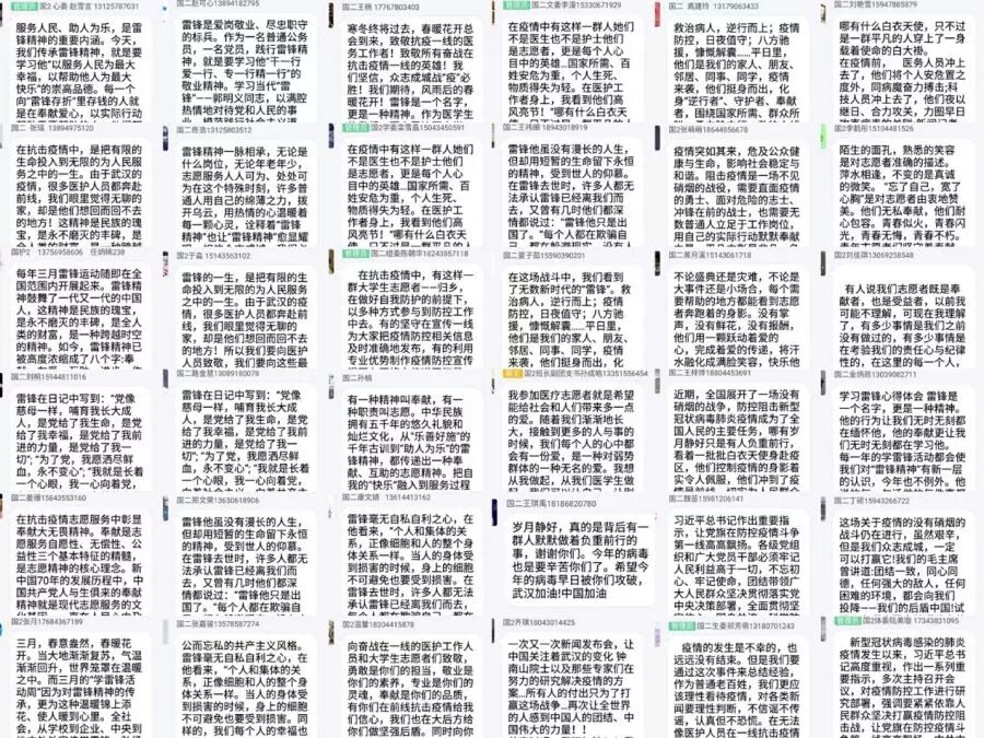 以在寒假期间参与到防疫工作中的张维同学、单欣璐同学以及勇于报名但未上岗的志愿者为榜样。班内同学形成学习雷锋、争当雷锋、践行雷锋精神的大氛围。同学在本次活动中热情高涨,班级呈现出良好局面,进一步增强团组织凝聚力。通过本次活动,引导同学们树立正确人生观、价值观和世界观。雷锋精神是中华民族一笔可贵的精神财富,同学们纷纷表示不但要在“学雷锋”活动中发扬这样的高尚精神,也要在日常生活中的点点滴滴去发扬这种优良传统,让这种“雷锋精神”永远的流传下去,让中华民族的传统美德发扬光大。