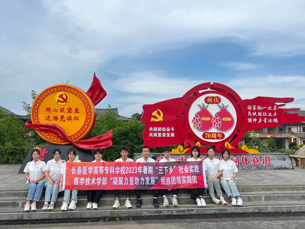 7月24日清晨,在朝阳微光的映射下,伴随着铿锵有力的出征口号,医学技术学院民族团结实践团20名师生为期两天暑期“三下乡”社会实践活动正式启航。