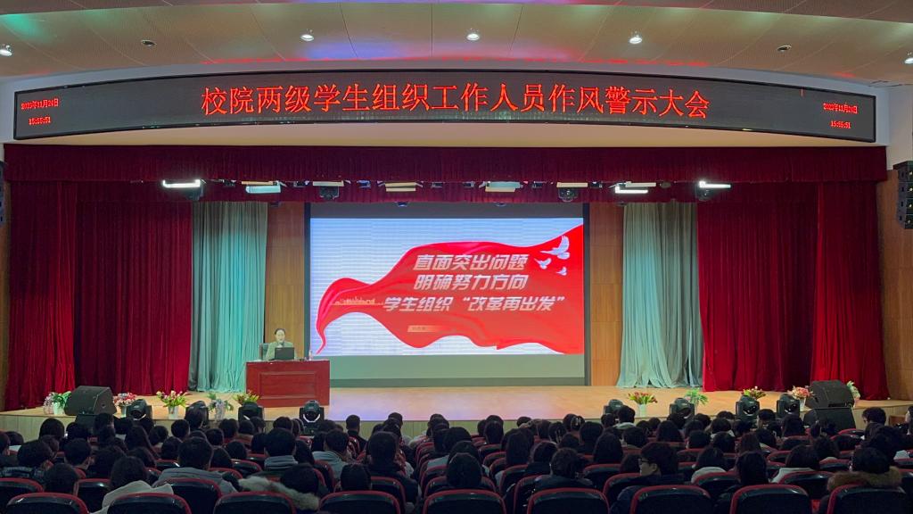 为深化落实共青团中央、吉林团省委关于共青团工作改革、学生会(研究生会)改革的相关工作要求,切实加强学生干部作风建设,打造一批思想素质过硬,实践能力突出的学生干部队伍,11月24日,校团委在图书馆报告厅召开校院两级学生组织工作人员作风警示会,团委书记刘思雅出席并作专题讲座,学生干部培训班三百余学员参加会议。会议由团委副书记刘雪菲主持。