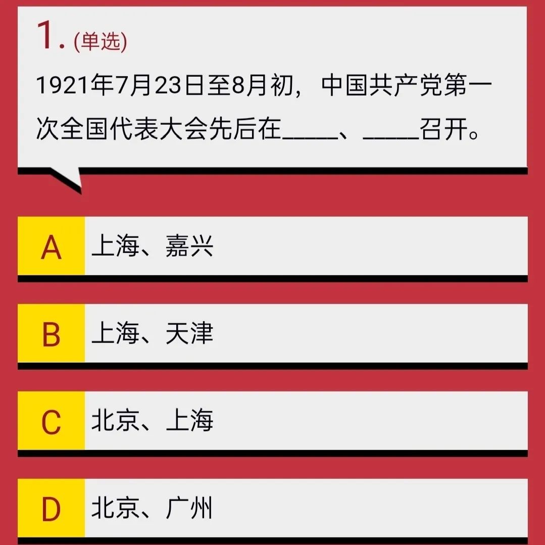 1921年7月23日至8月初,中国共产党第一次全国代表大会在上海举行。8月初闭幕。大会进行到7月30日,会场突然遭到暗探的侦察,被迫休会。最后一天的会议是转移到浙江嘉兴南湖的一艘游船上举行的。大会的中心议题是正式建立中国共产党。