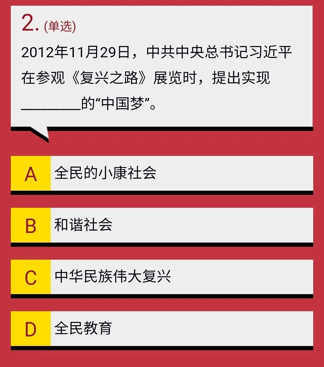 2012年11月29日,在国家博物馆,中共中央总书记习近平在参观“复兴之路”展览时,第一次阐释了“中国梦”的概念。他说:“大家都在讨论中国梦。我认为实现中华民族伟大复兴,就是中华民族近代以来最伟大的梦想。