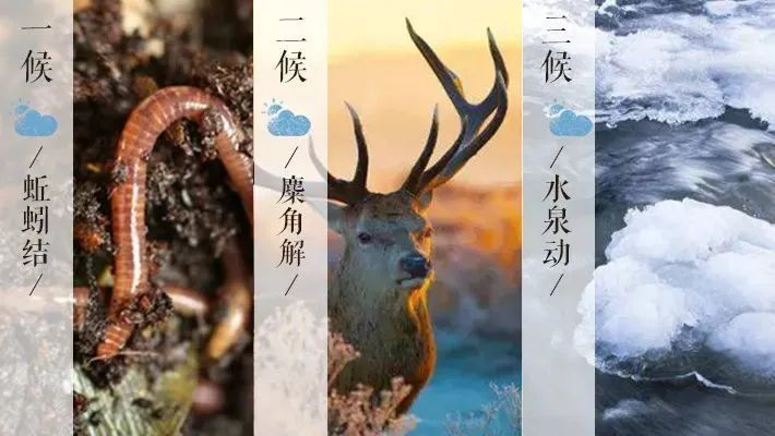 中国古人将冬至分为三候:“一候蚯蚓结;二候麋角解;三候水泉动。”